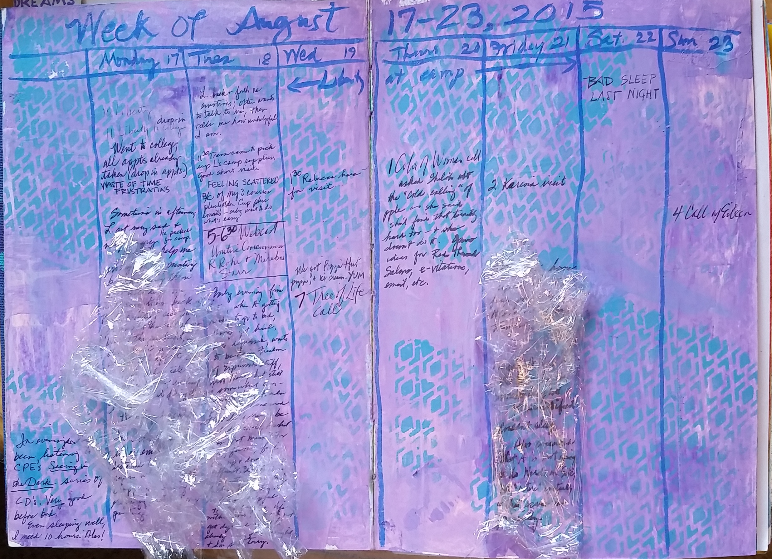 Here we are, the last week before Labour Day.  Lots of buzz in my household with my son starting college again.  I’ve been very busy painting and writing for my online courses.  One of the things that has been bringing me a lot of happiness is working/playing/writing/arting in my journal.
