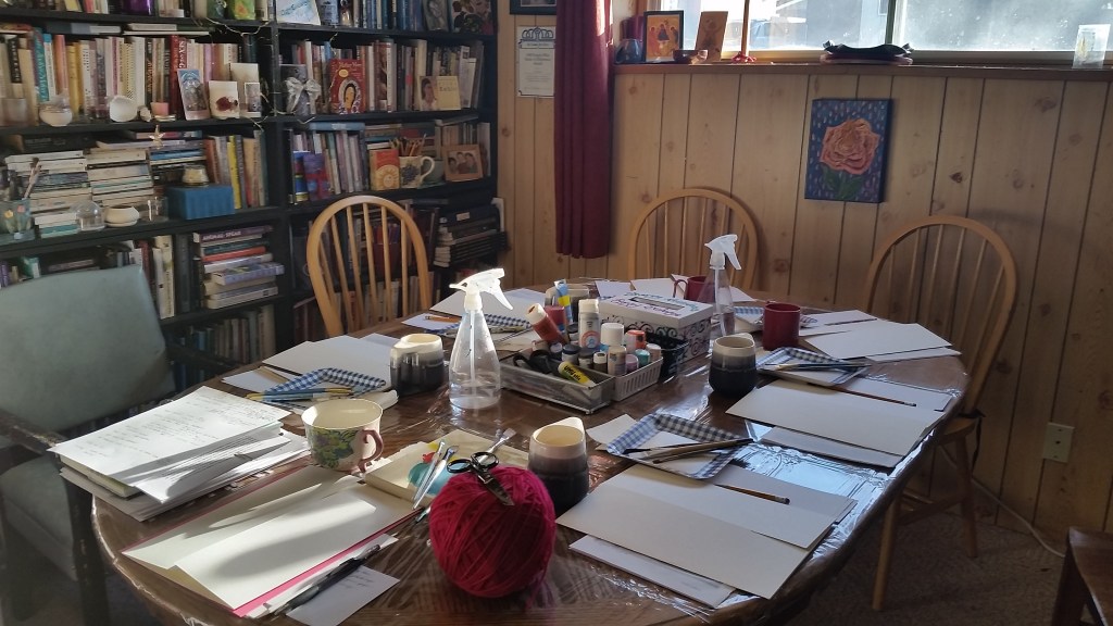 As most of you know, I love working in small groups. By small, I mean between 4 and 9 people, sitting around my big table in my small studio, writing and sharing in person. With that small number of women, there are all the advantages of getting feedback from others yet still being able to create an intimate, respectful circle where we can share deeply. It’s as close to a “safe community” as humans are able to create, and the results are beautiful and powerful.